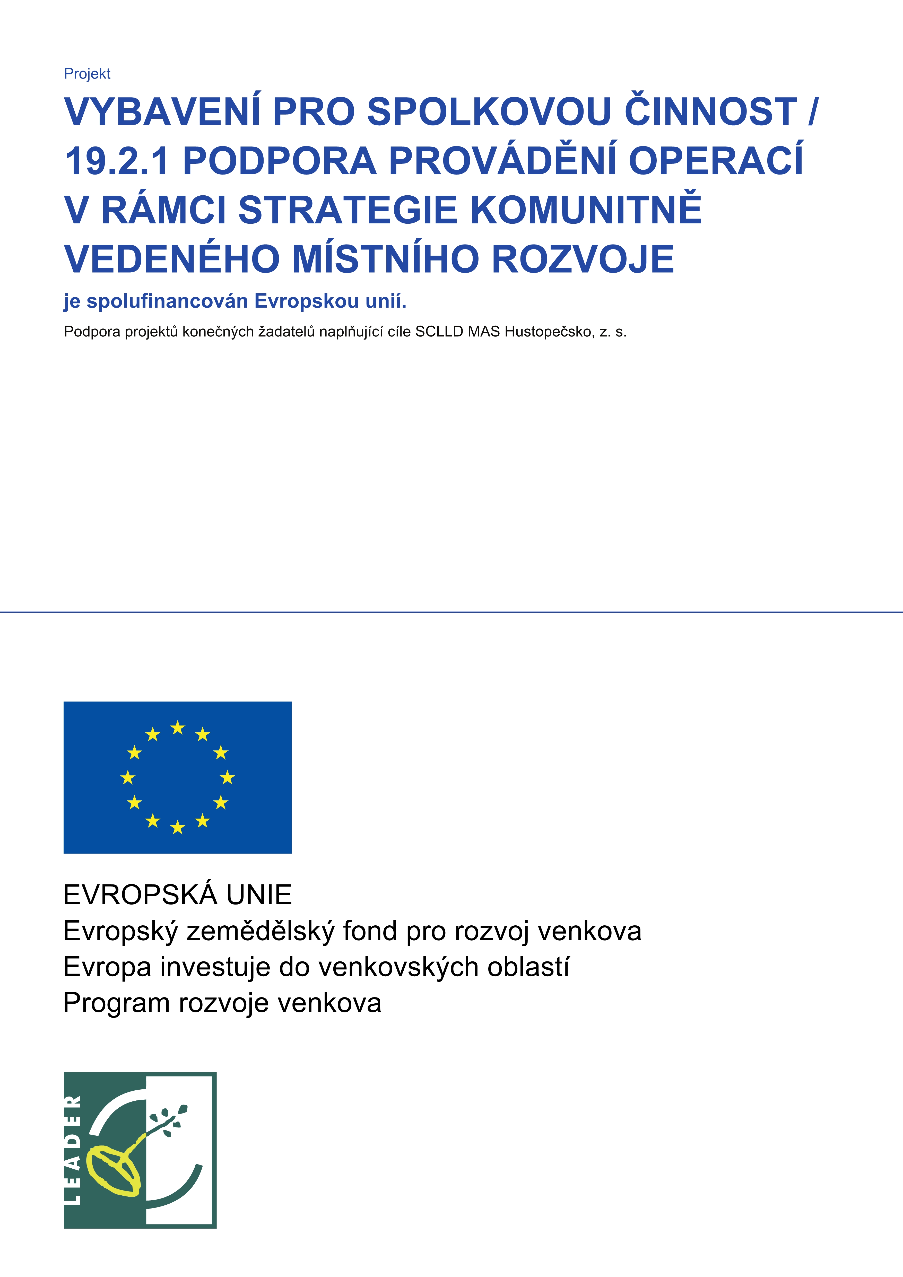 Tyto investice jsou řešeny ve spoluprací a s podporou MAS Hustopečsko, z. s. v rámci Programu rozvoje venkova